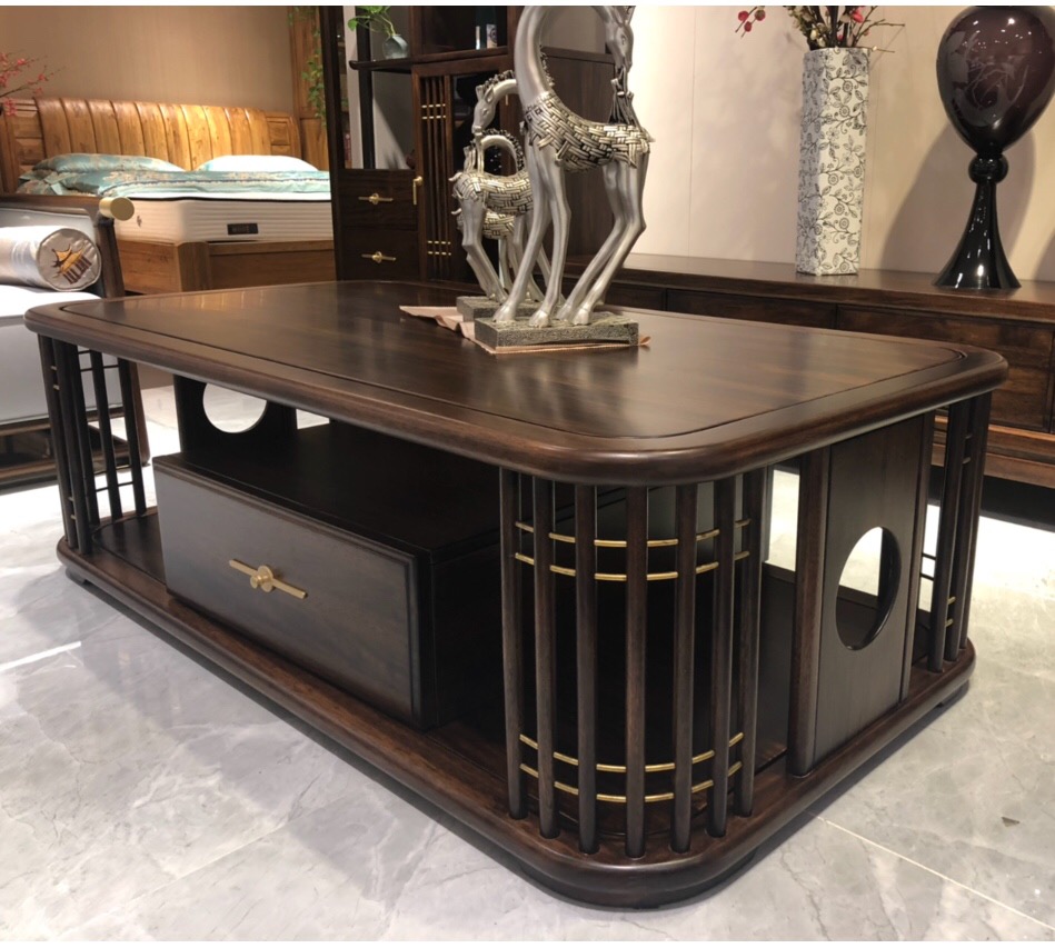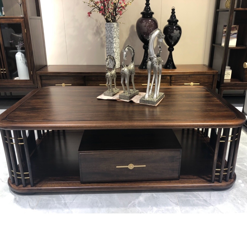 政君运-乌金木大茶几 带抽屉 1450*800*455