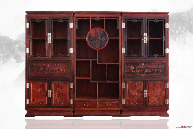 政君运-红酸枝书柜组合 285*38*210