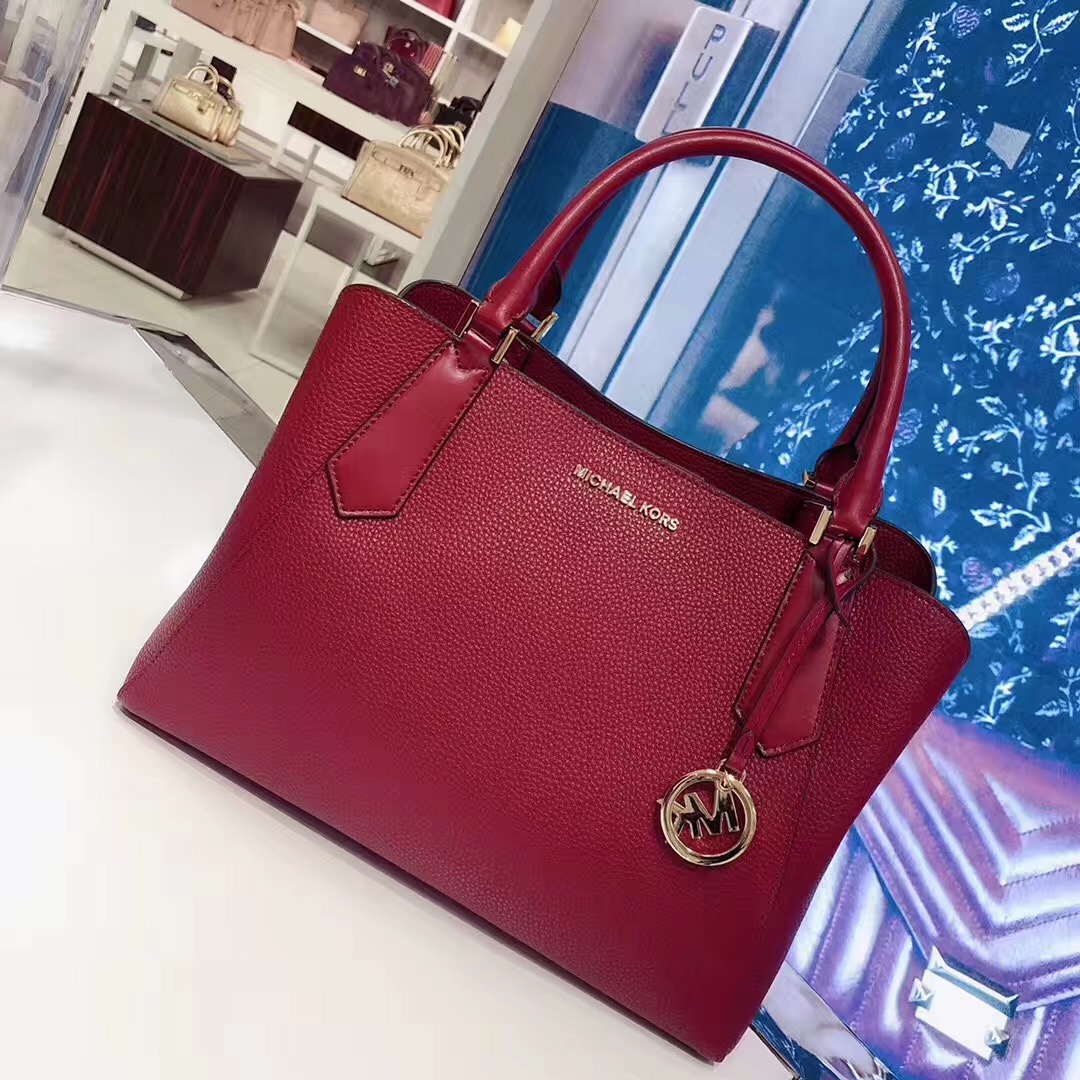 德利天达-mk 真皮戴妃系列酒红色 大号:34*23