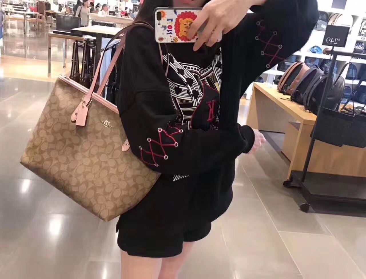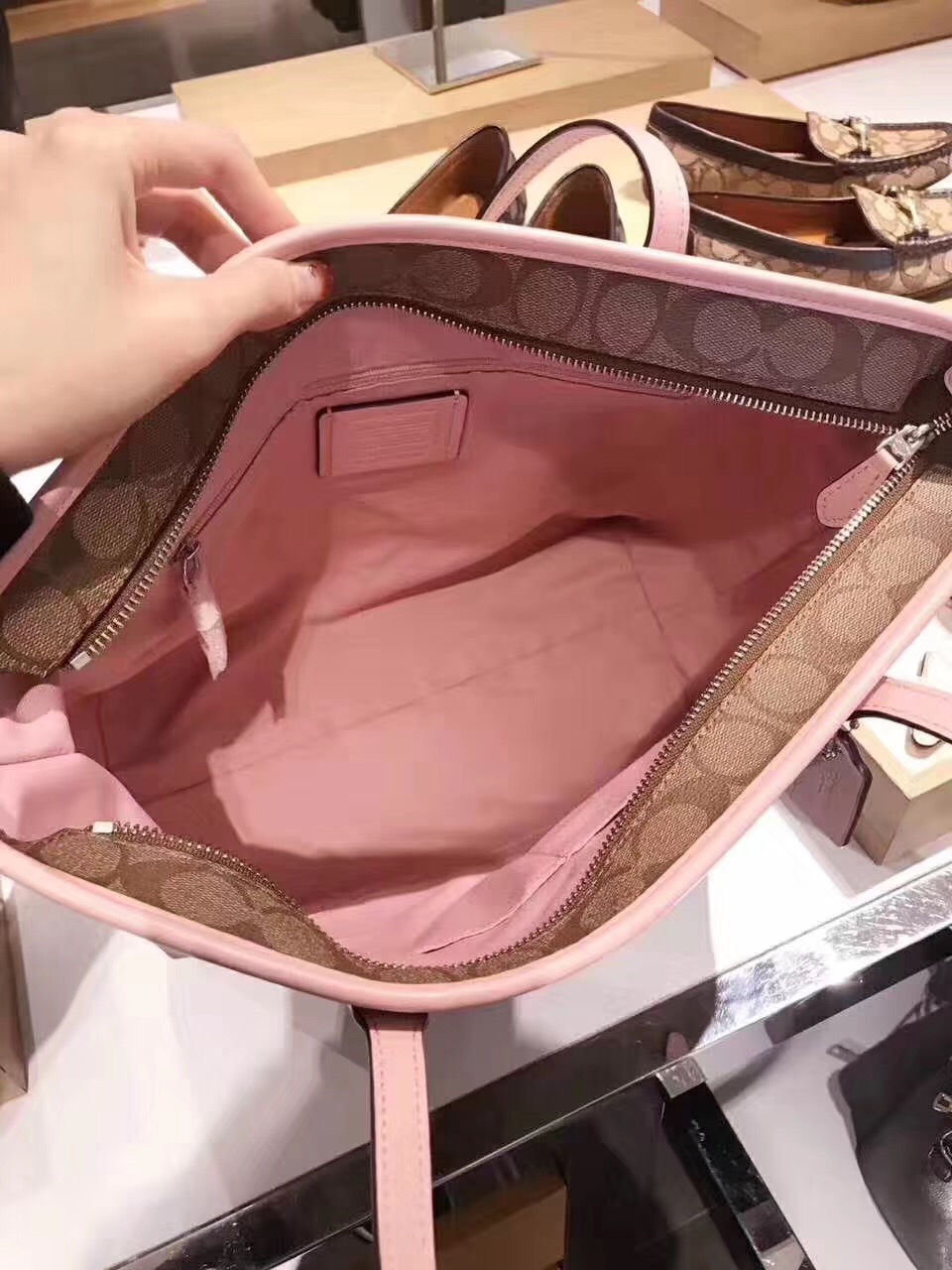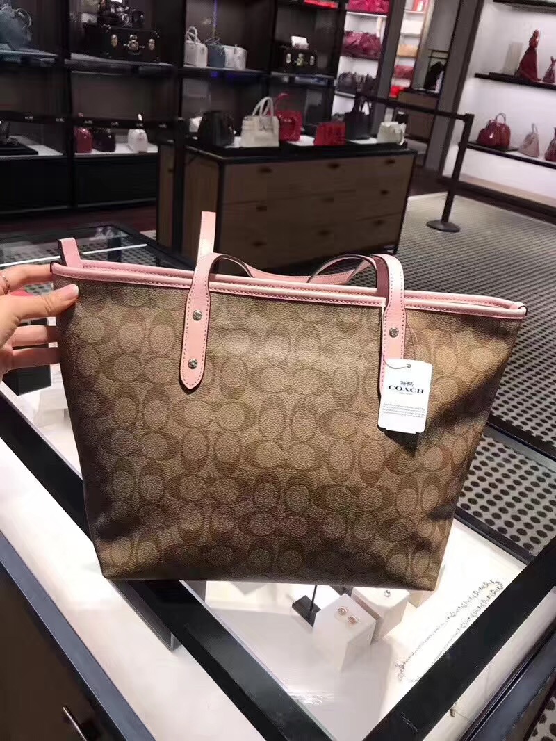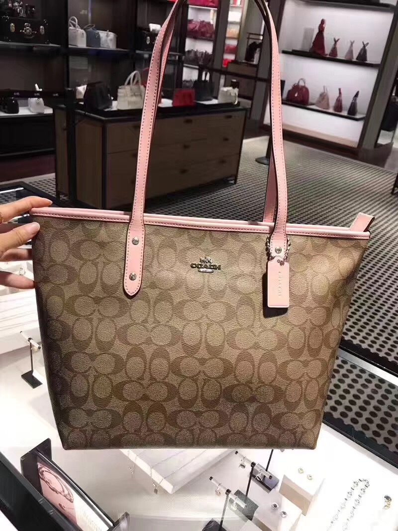德利天达-coach粉边logo购物袋 直邮商品不退