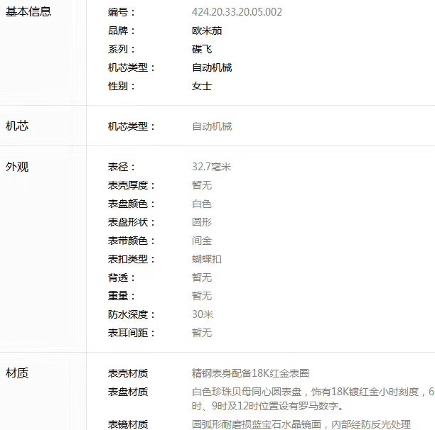 德利天达-欧米茄 蝶飞系列女士 机械表