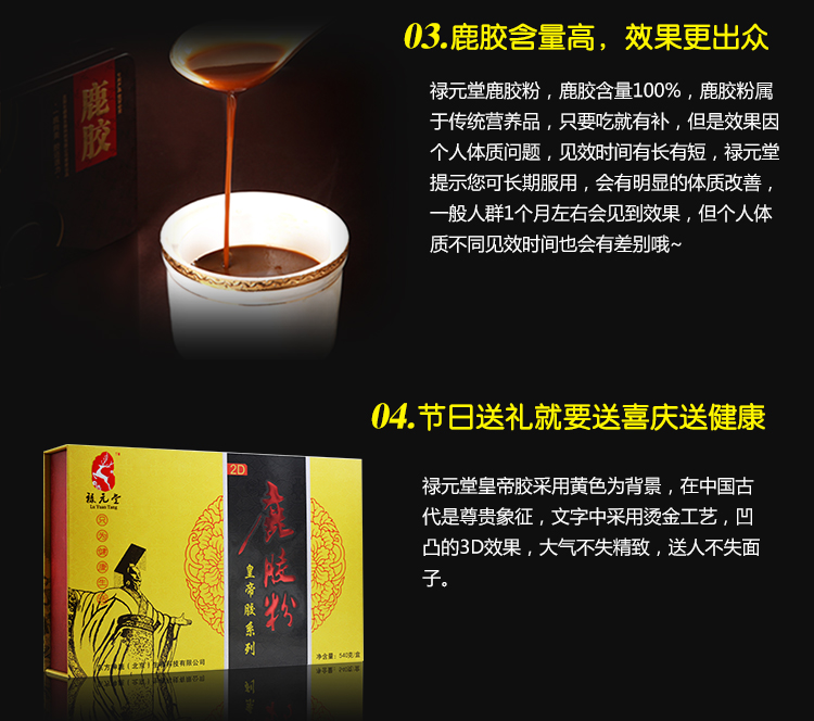 禄元堂鹿胶皇帝胶540克礼盒装补气血调肾亏健体魄