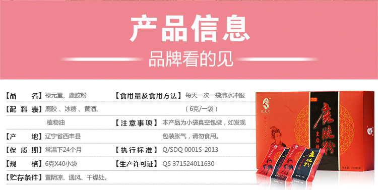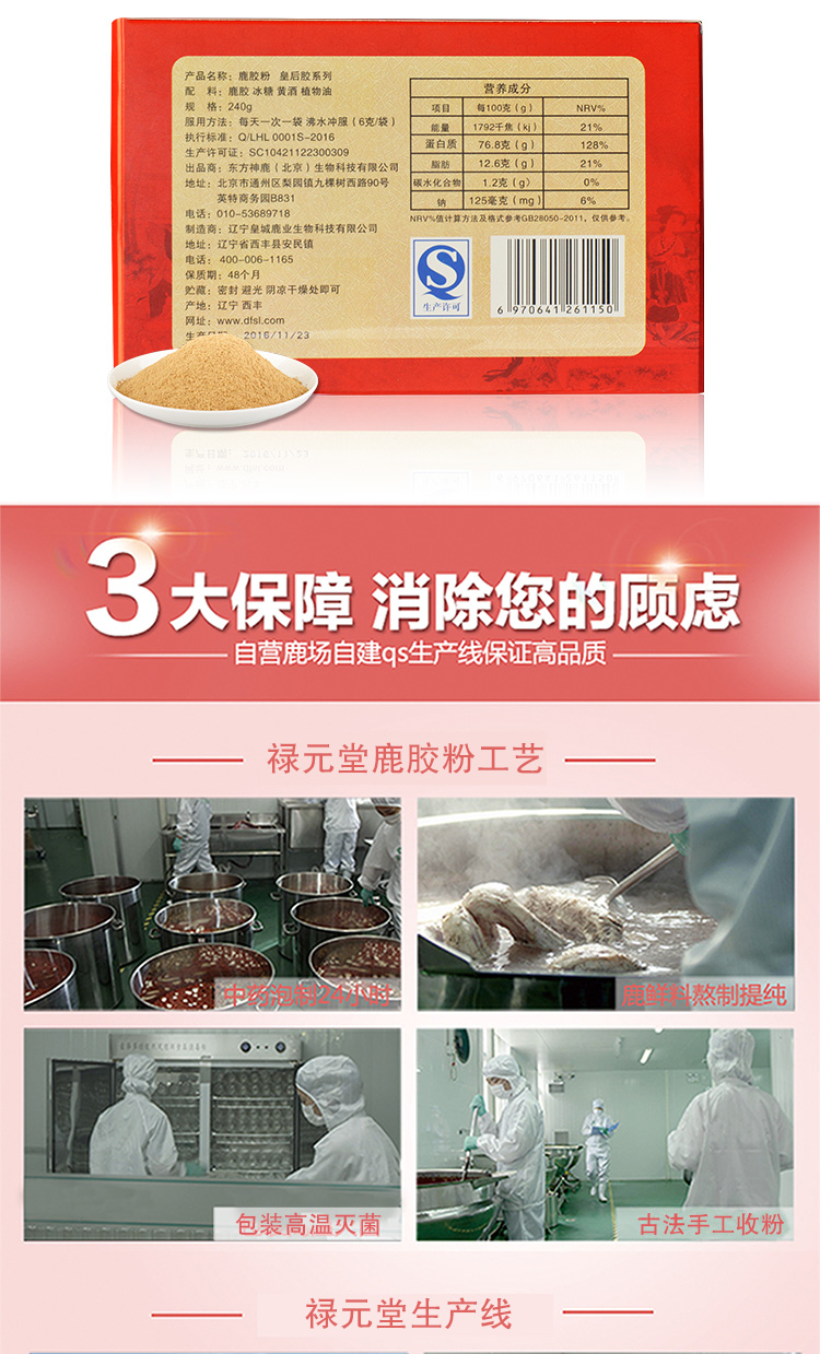 禄元堂鹿胶皇后胶240克普通装补气血美容养颜调理月经