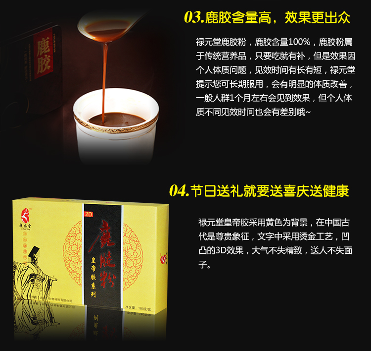 禄元堂鹿胶皇帝胶180克普通装补气血调肾亏健体魄