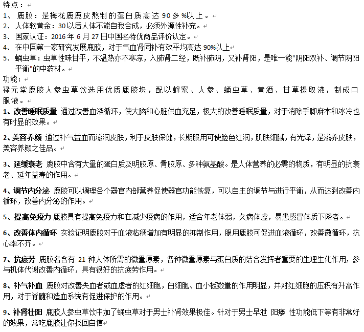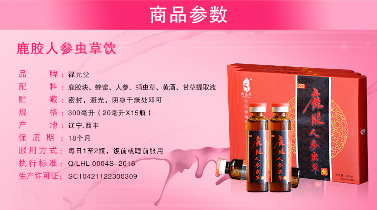 禄元堂鹿胶人参虫草饮300毫升抗疲劳、助睡眠