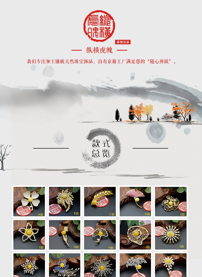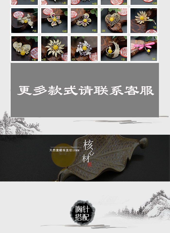 纵横琥珀蜜蜡镶嵌时尚胸针、丝巾扣、毛衣坠(25款选1,请将款式编号备注到商品信息中)