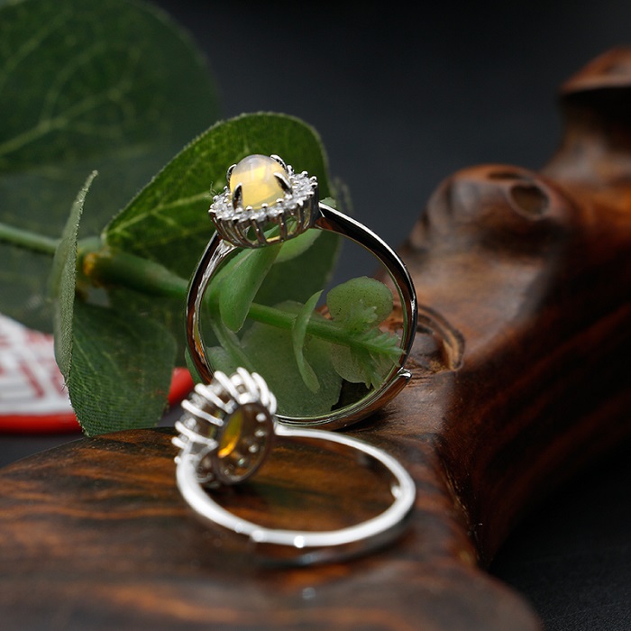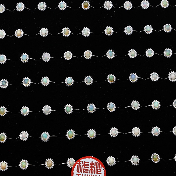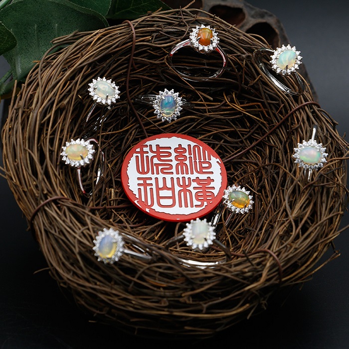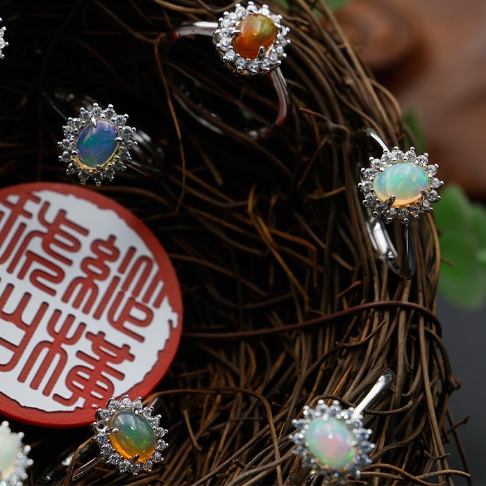 纵横琥珀天然多彩欧泊女款戒指(天然宝石一物一彩,请与客服确认后再发货)