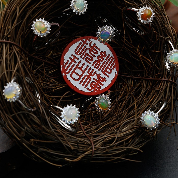 纵横琥珀天然多彩欧泊女款戒指(天然宝石一物一彩,请与