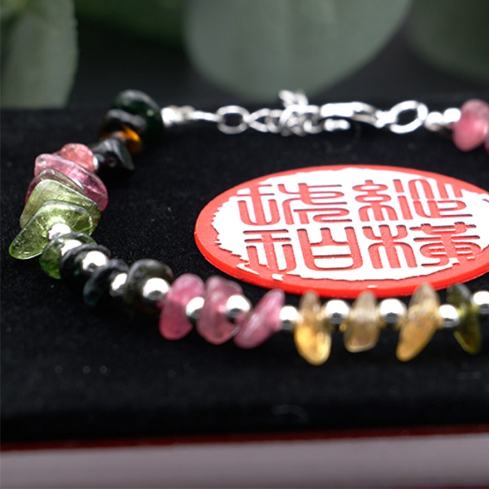 纵横琥珀天然随形碧玺手串