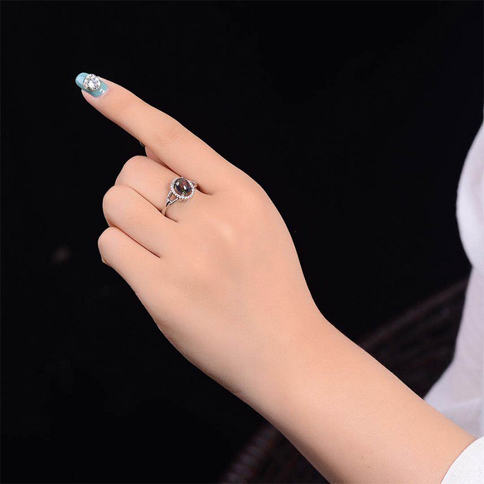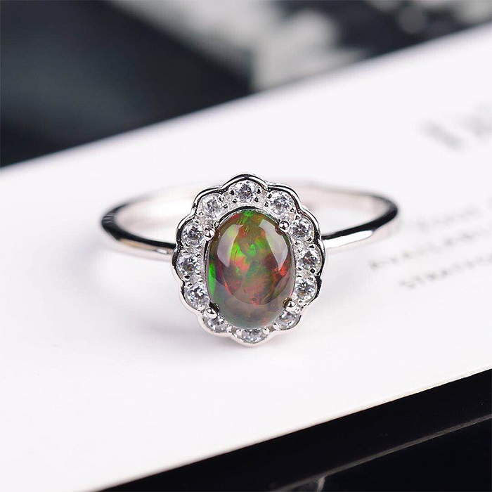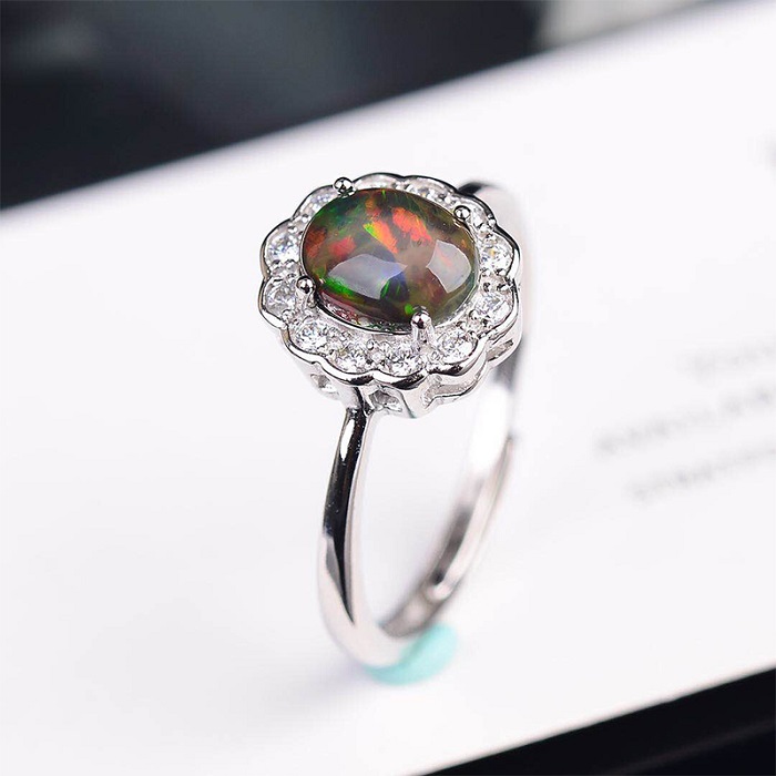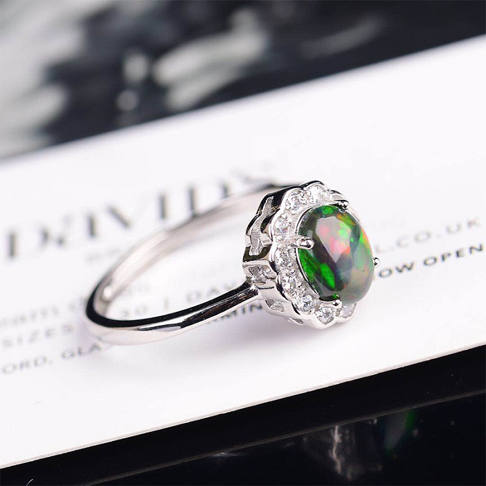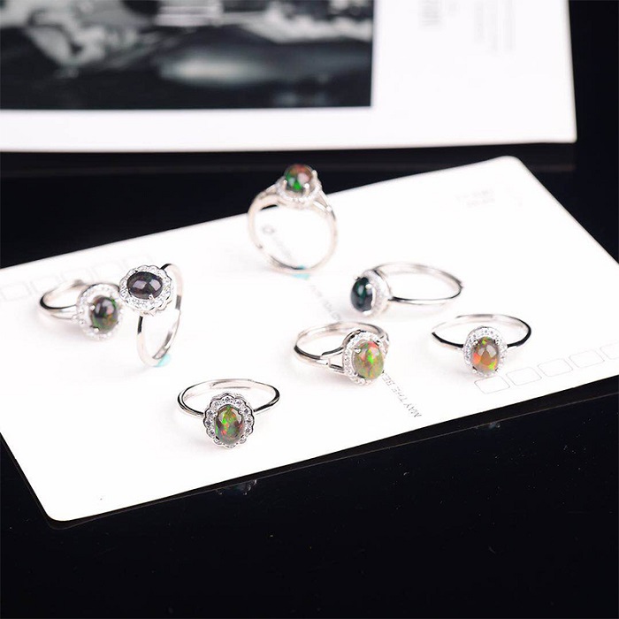 纵横琥珀天然黑欧泊女款戒指