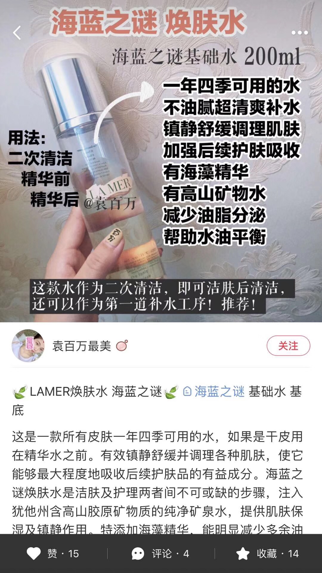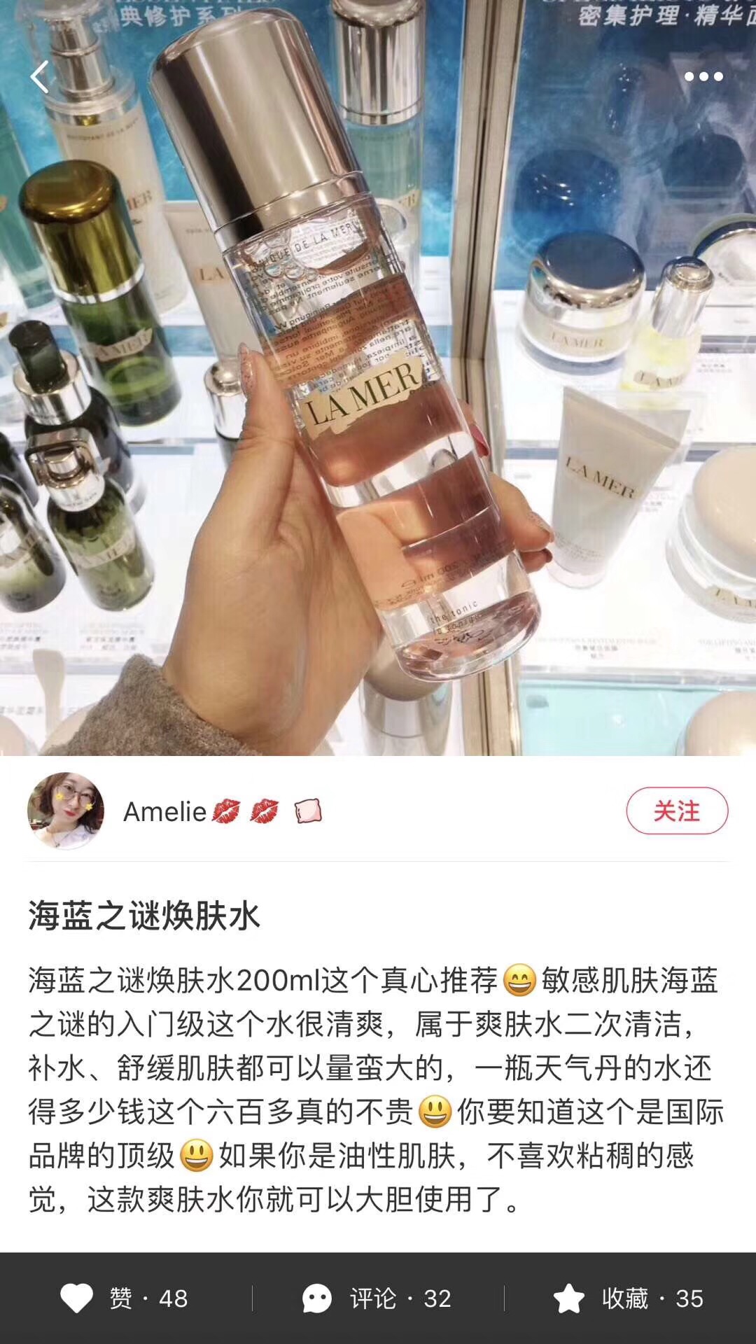 💚海蓝之谜焕肤水200ml 林允在小红书推荐过!特别推荐,适合任何肤质,不贵好用~有效镇静舒缓并调理各种肌肤,焕肤水是洁肤及护理两者间不可或缺的步骤,提供肌肤保湿及镇静作用。特添加海藻精华,能明显减少多余油脂分泌,预防暗疮、粉刺等问题