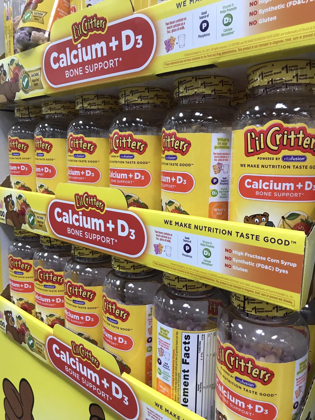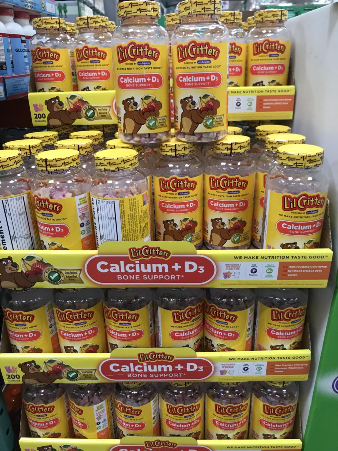 Lil Critters小熊糖 钙+维D3软糖200粒,专为儿童骨骼和牙齿的发育所需而设计,提供儿童每日所需的钙质与维他命D,两粒小熊钙片软糖的含钙量相当于150毫升纯牛奶,更加入维生素D以帮助身体对钙的吸收,水果口味可使小孩更喜欢吃,宝宝吃得放心健康,妈妈再也不用为了宝贝的厌食而导致的缺钙烦恼啦!请注意当地天气,夏天温度太高避免路途软化,请慎重购买!!!