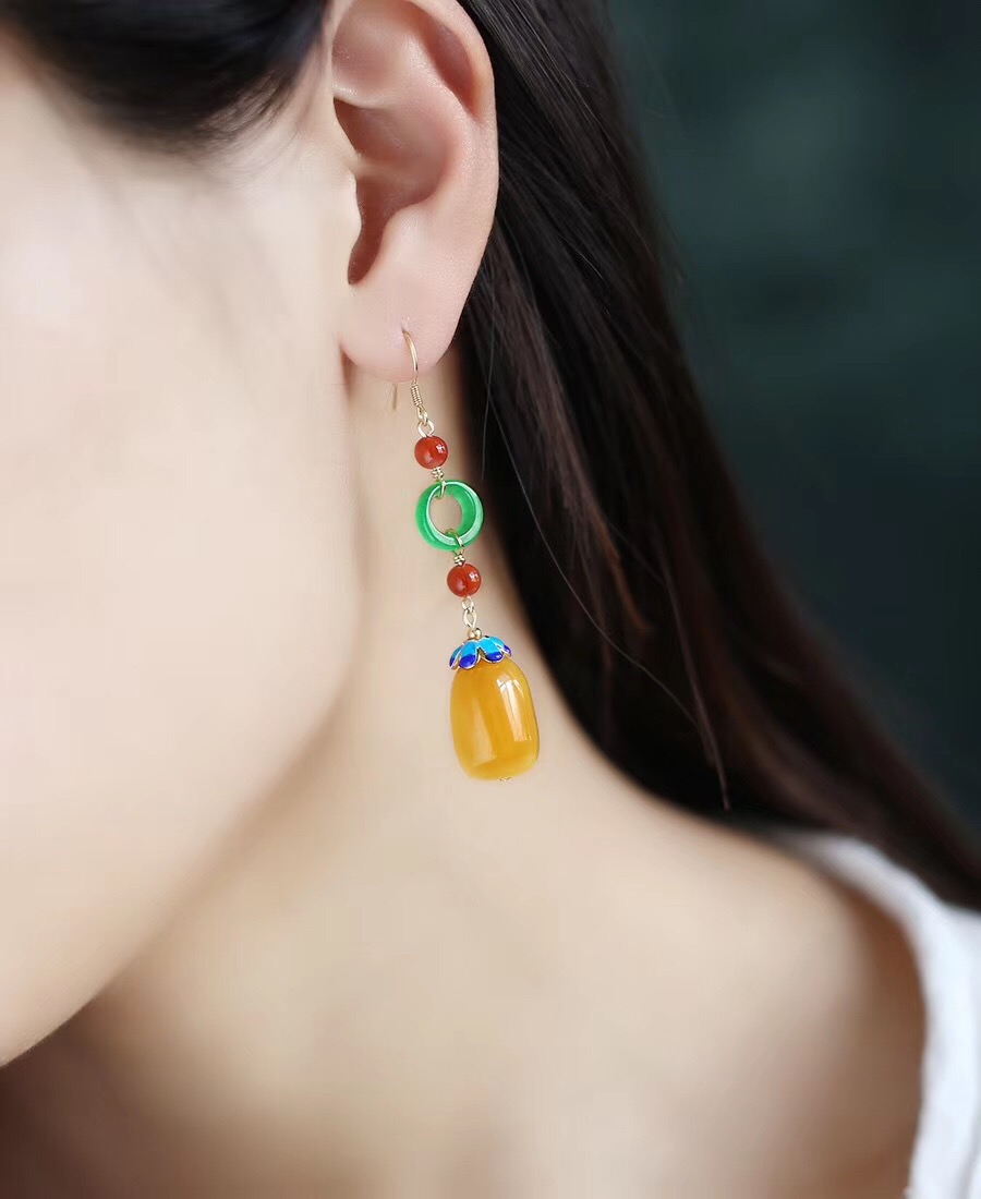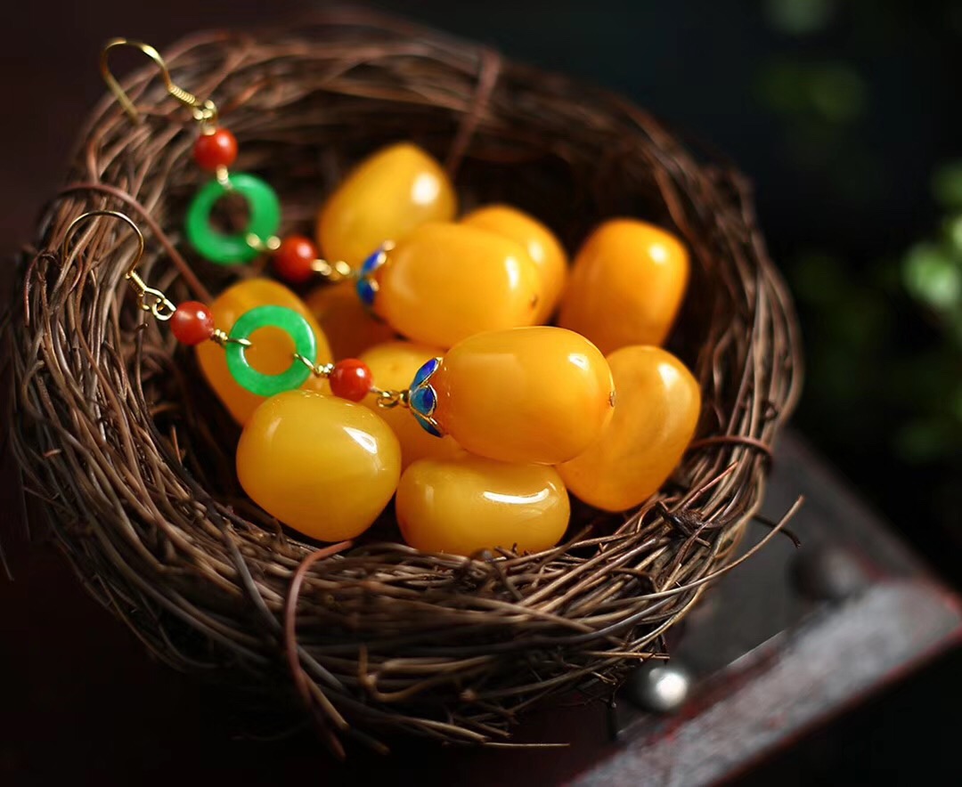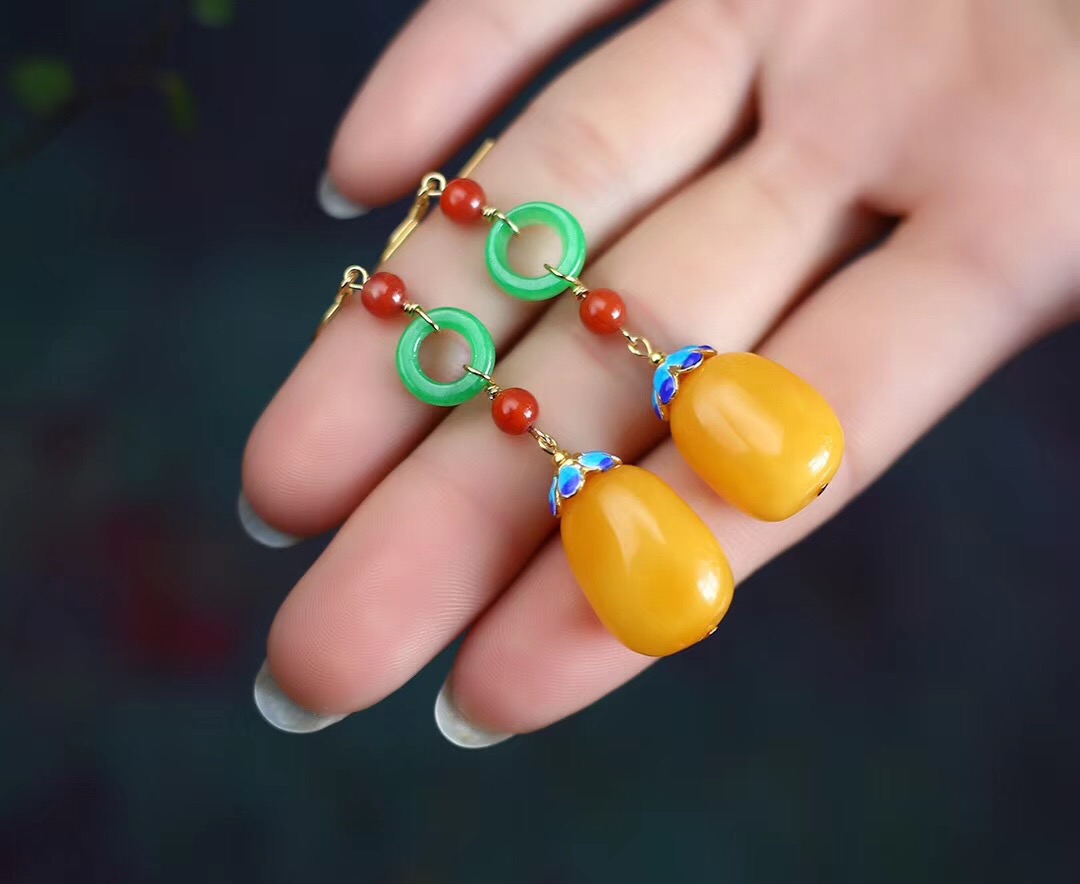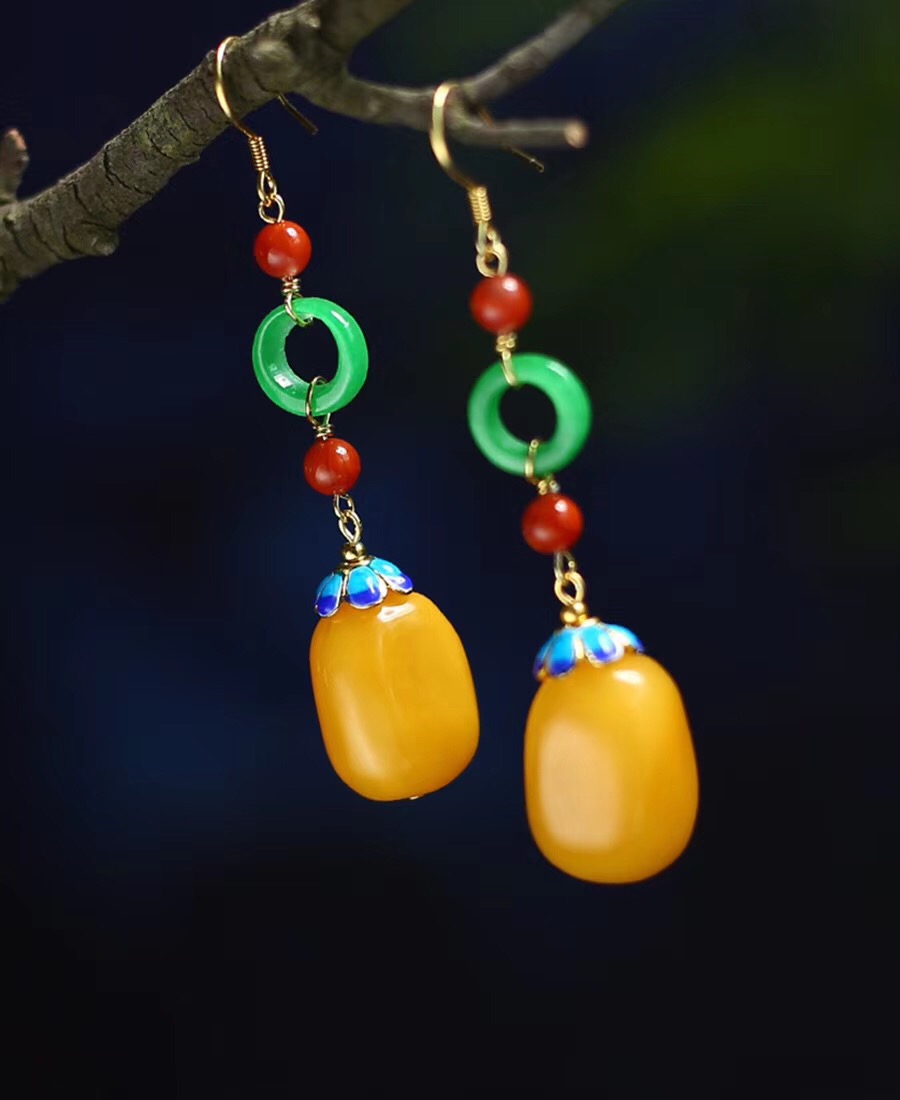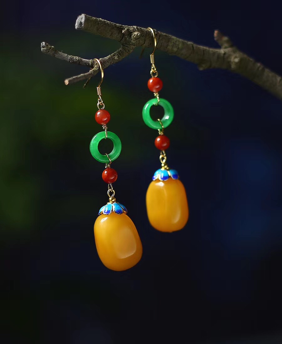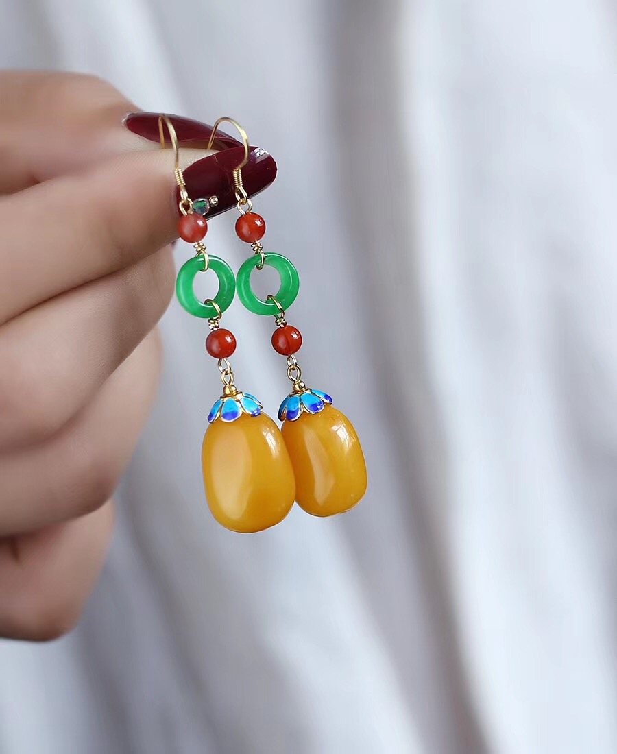 蜜蜡随行珠耳坠