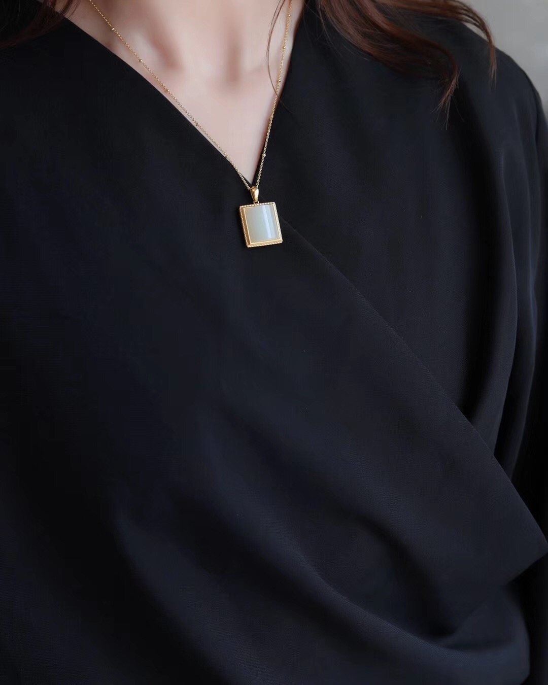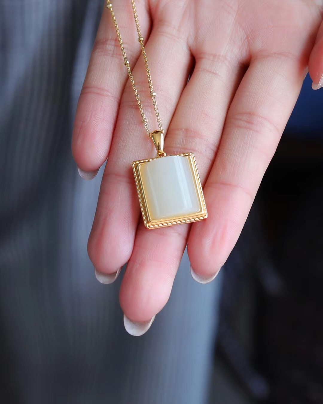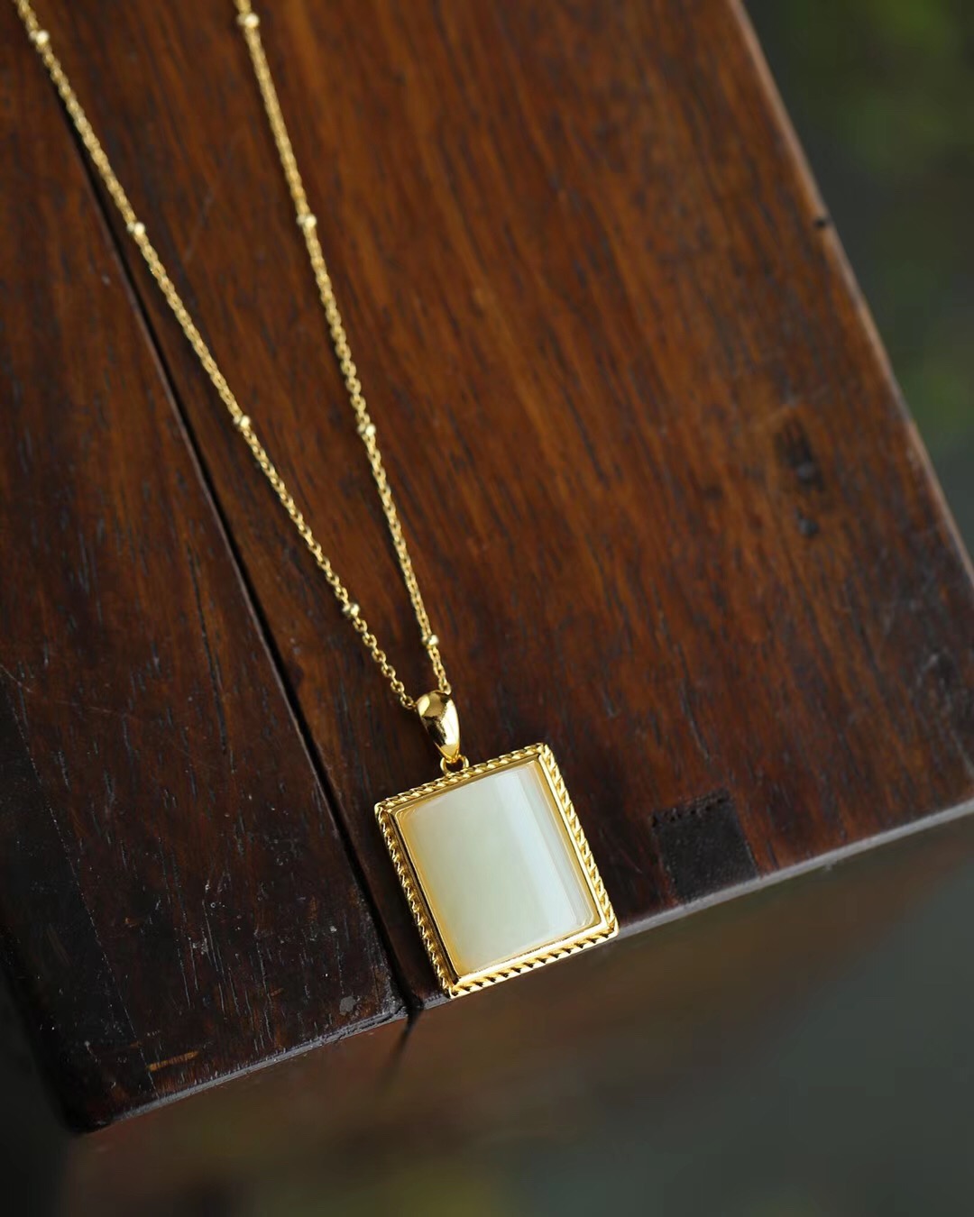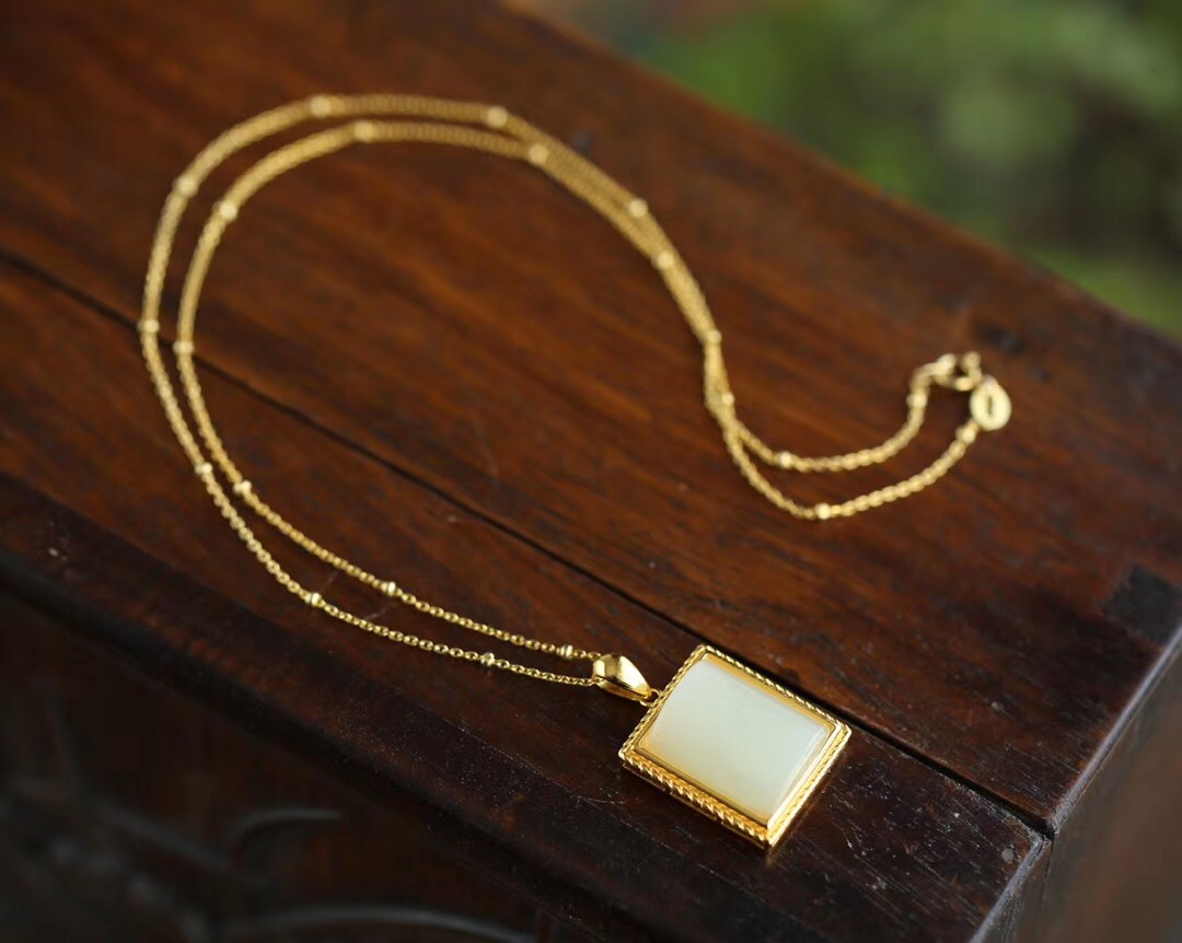 非常简洁大气的金镶玉无事牌吊坠,纯银鎏金镶嵌