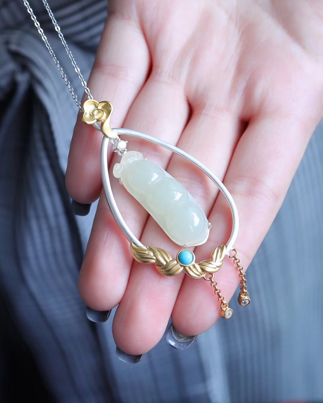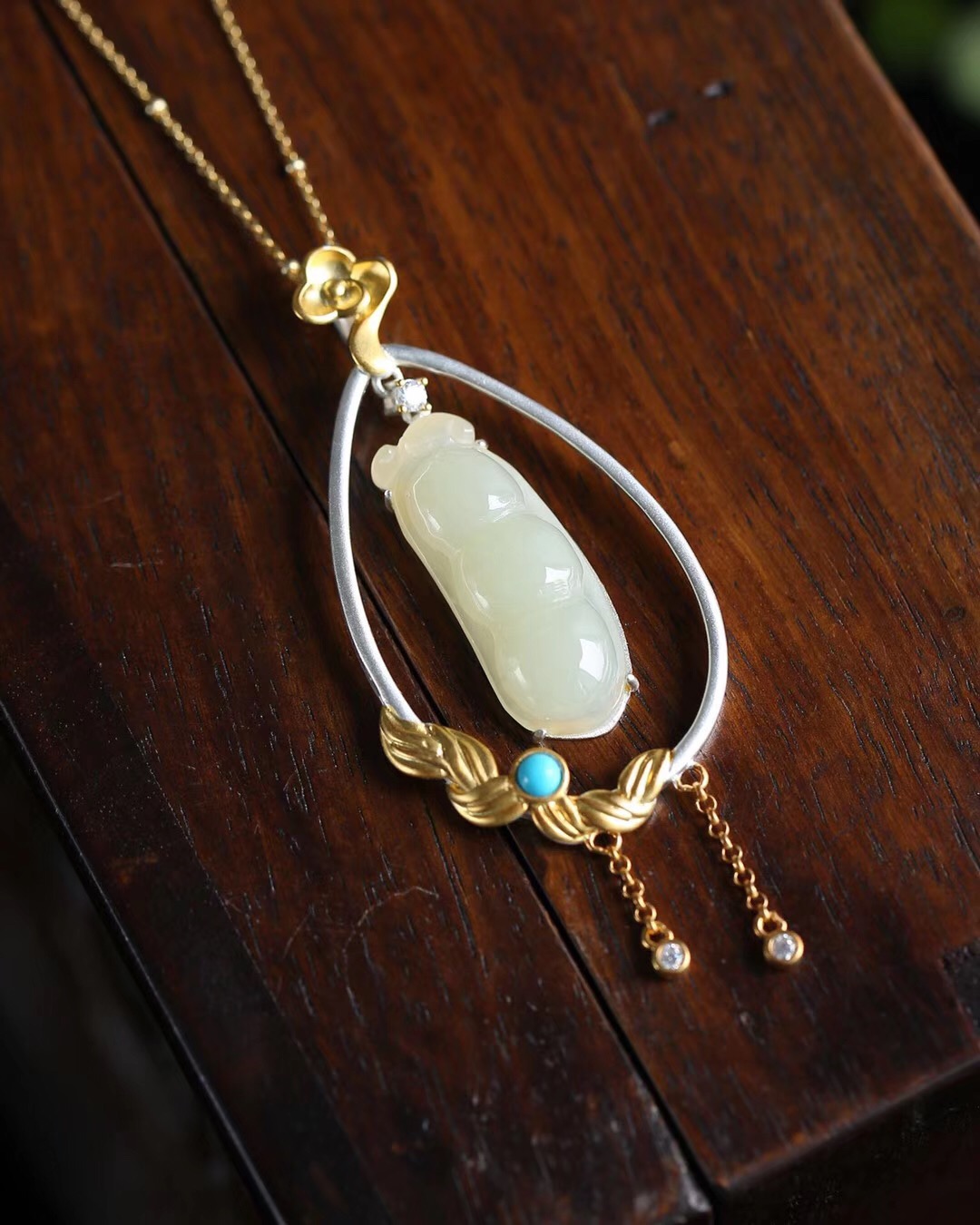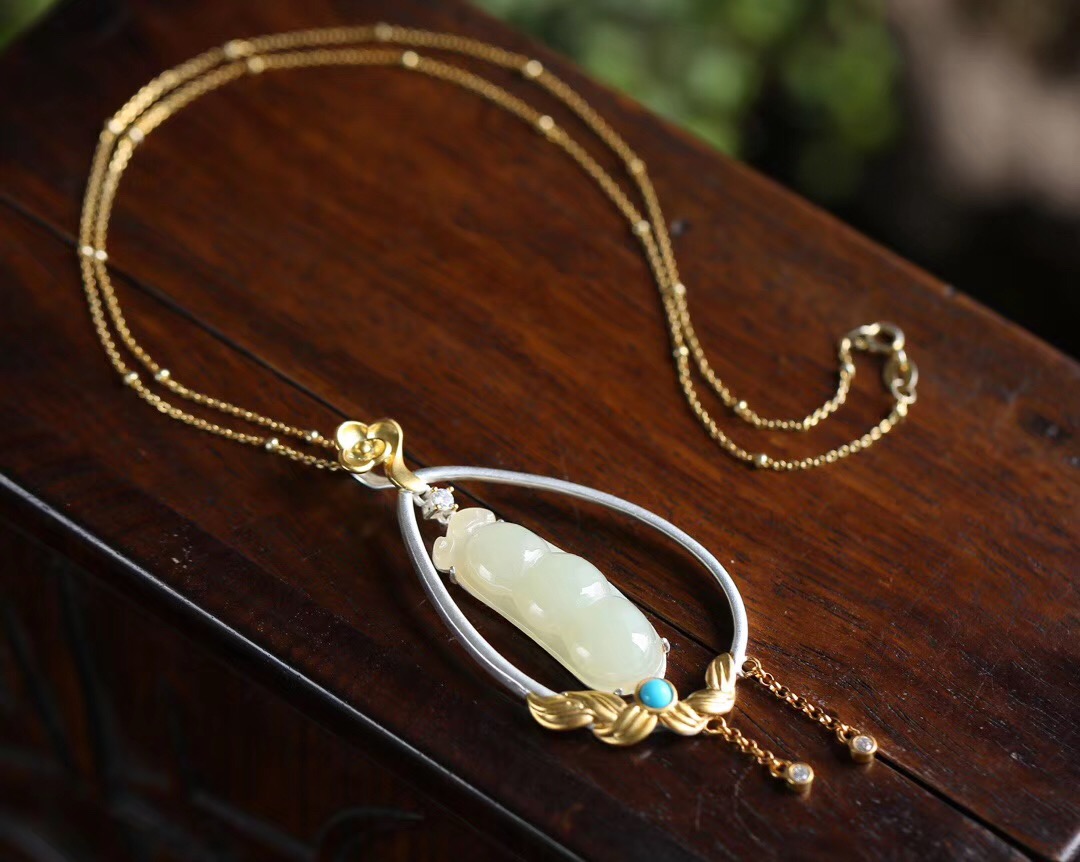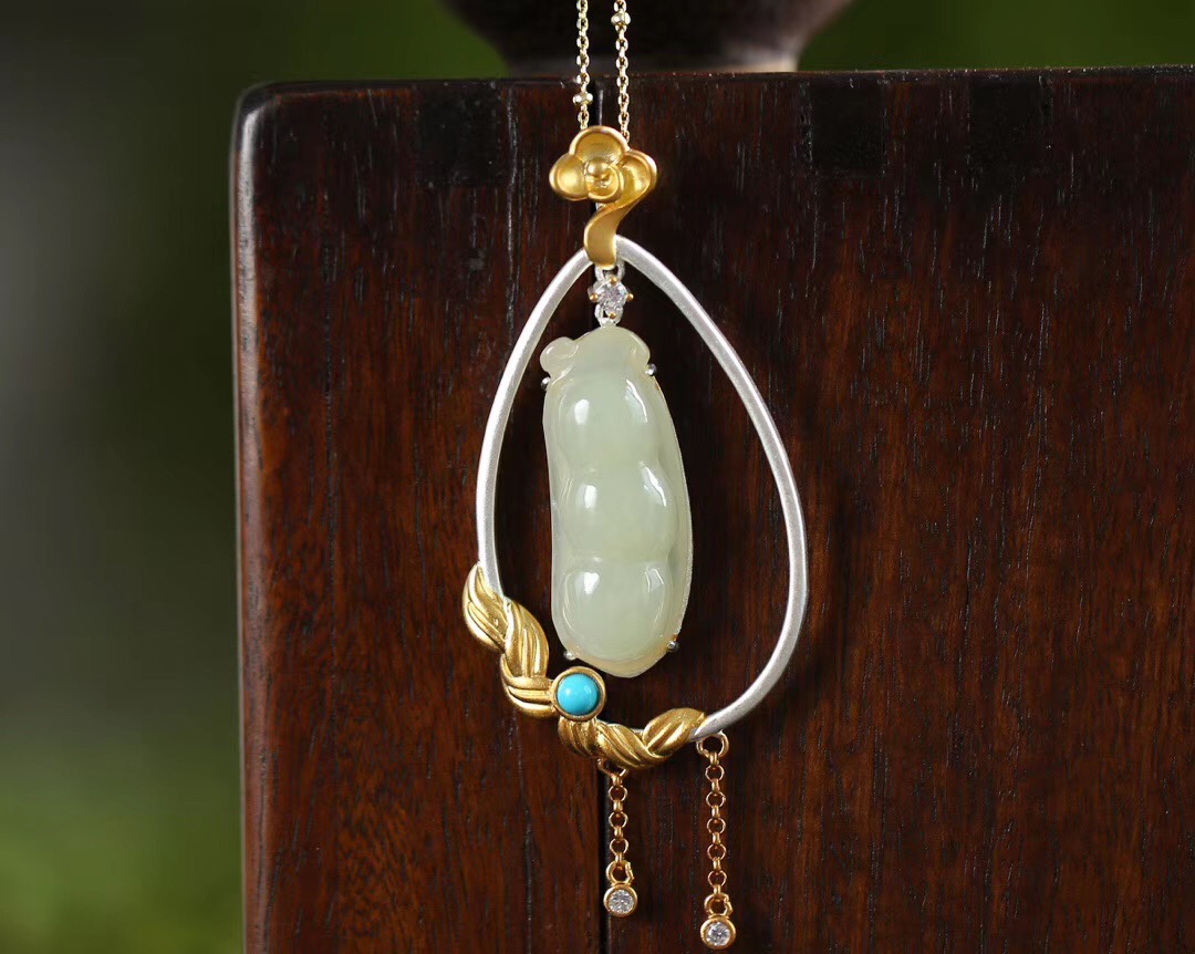 镶嵌天然和田玉四季豆 六速的点缀更加仙气