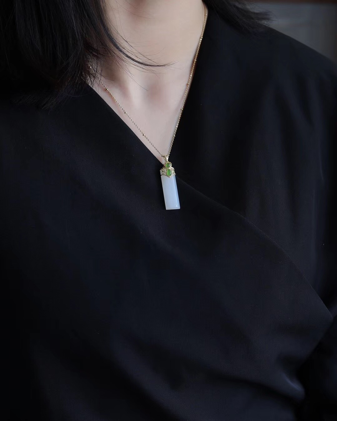 纯银鎏金镶嵌天然碧玉点缀 堪比金货