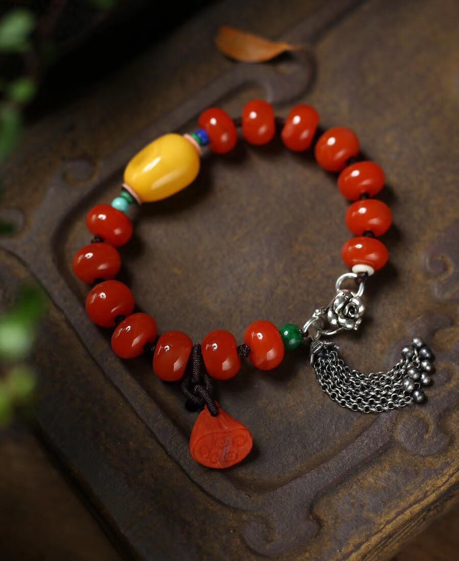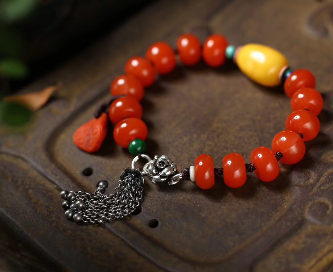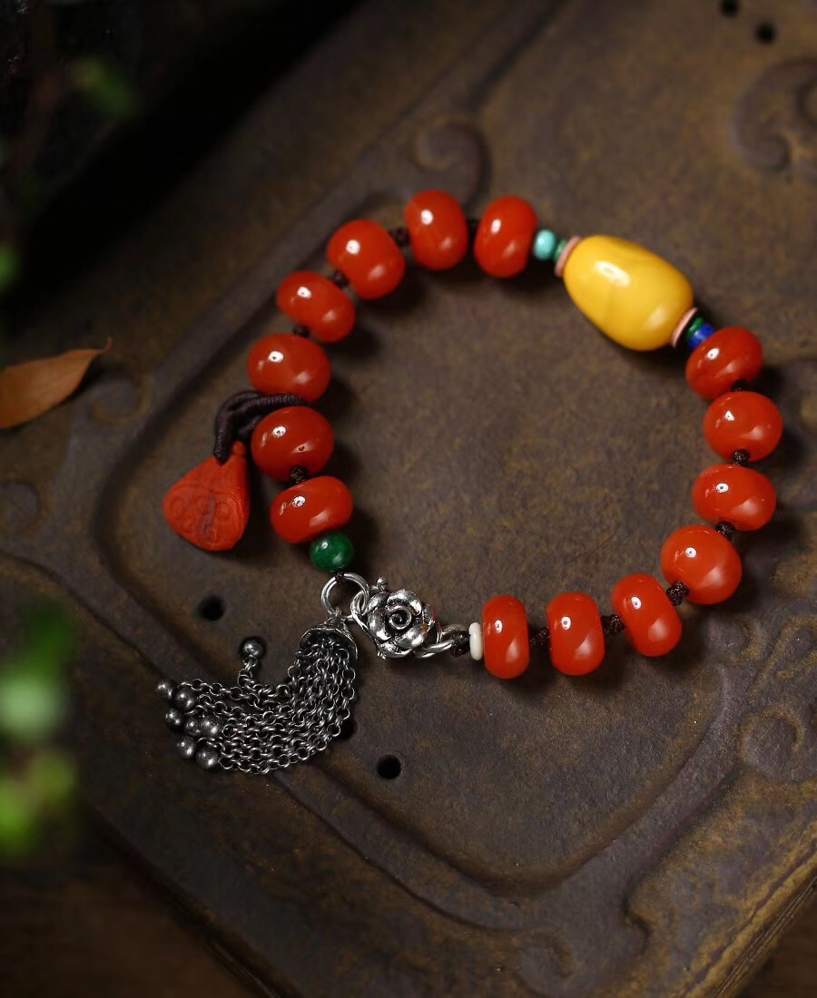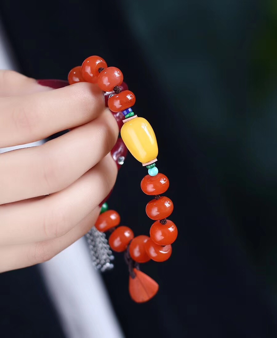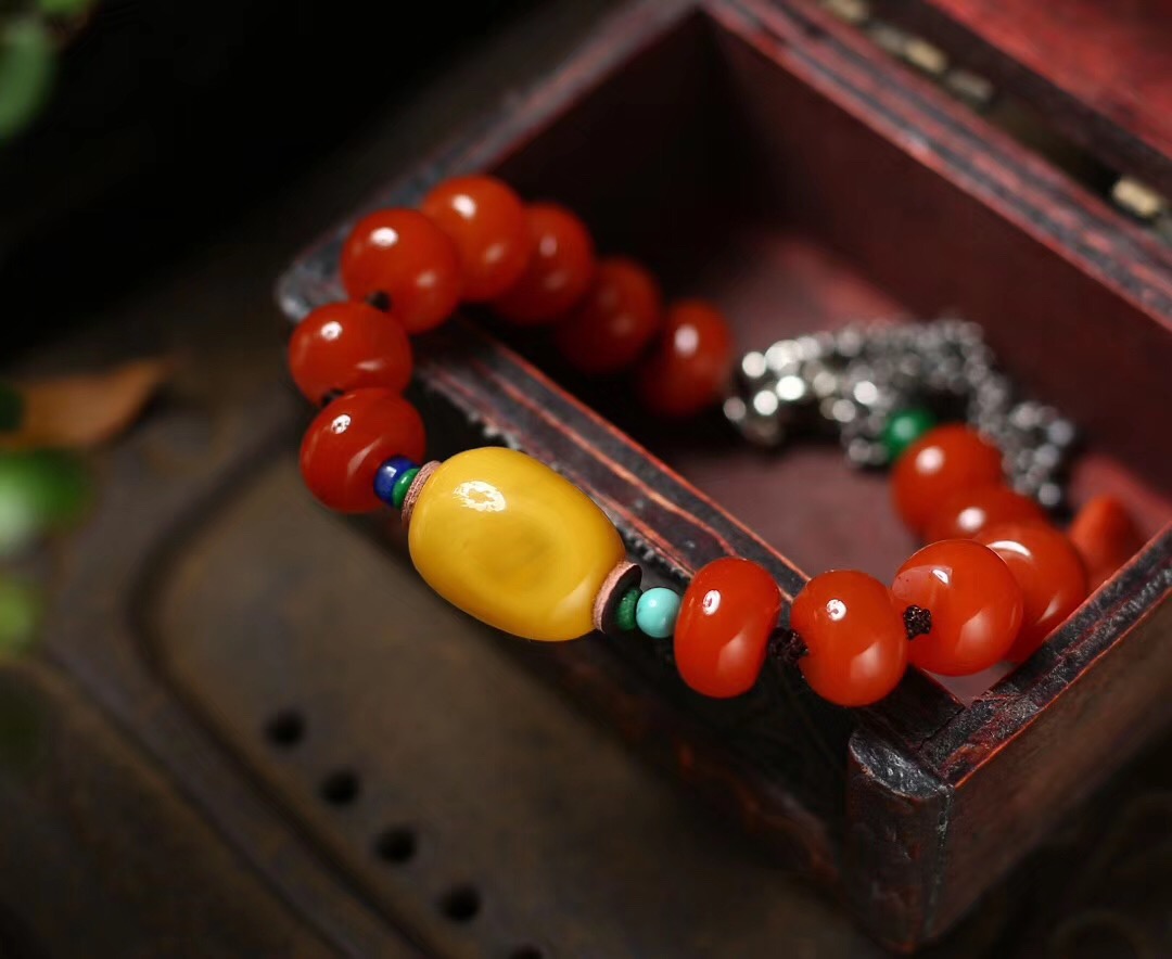 尺寸:11mm 搭配蜜蜡随行珠 南红莲蓬 925银