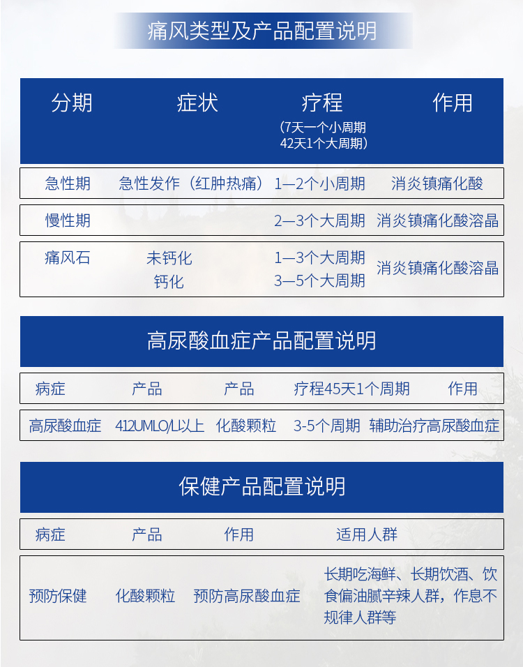·1盒化酸颗粒、4盒止痛凝胶、7包足浴粉、7包痛风灸贴