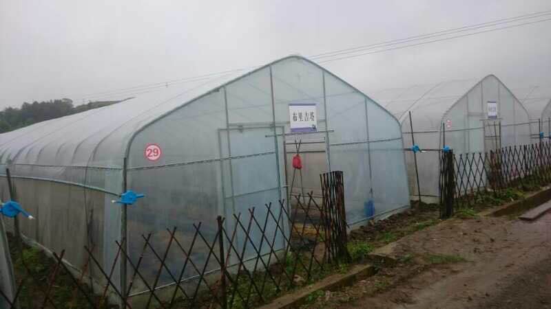 6米尖顶棚,顶高3米,肩高1.8米,两边卷膜开窗,球形卷膜器。