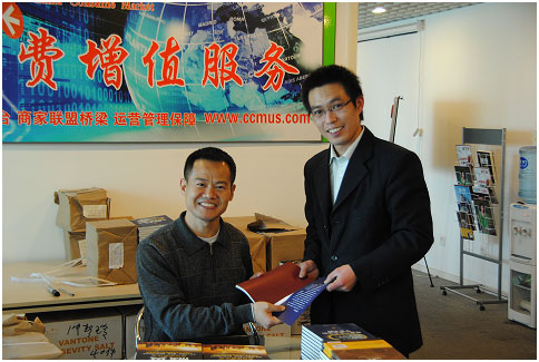 总裁安迪.樊为中国消费市场网市场一部经理肖涵月签书情景