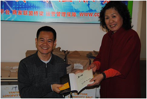 最后消费资本集团总裁安迪.樊在CCG股东强烈要求下,为参加座谈会会的代表赠送一套他本人与刘建华撰写的《奔向纳斯达克》等书籍并现场签名。