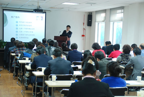 美航凯(阜新)互联网管理公司副总裁金涛、赵向东分别向与会代表介绍了CCG中国公司组织架构图、工作职能及CCM联名消费卡服务操作指南、使用规则及网下运营政策。美航凯(阜新)公司市场运营部经理郭嵩讲解了网下签约商户相关工作流程并交流了相关工作经验。