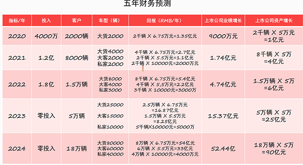 2020年在纳斯达克挂牌交易。财务报表增加5亿元的资产。收入4亿元人民币,这样美国投资机构才会有接盘的意愿。为了完成计划需要股权融资,股本金投入到节油减排项目,支撑股票价格上涨,用环保科技引爆市值。